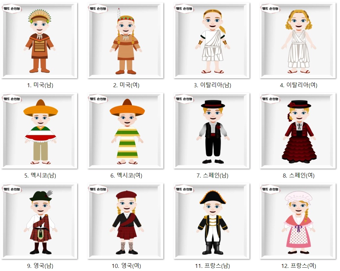 세계의상인형,두꺼운종이 손인형 diy
