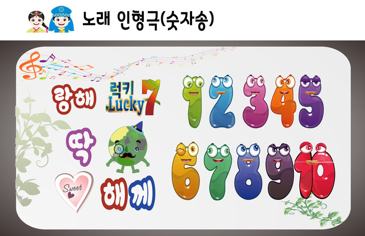 노래인형극놀이세트(숫자송): 손인형10개, 글씨및 소품판6개